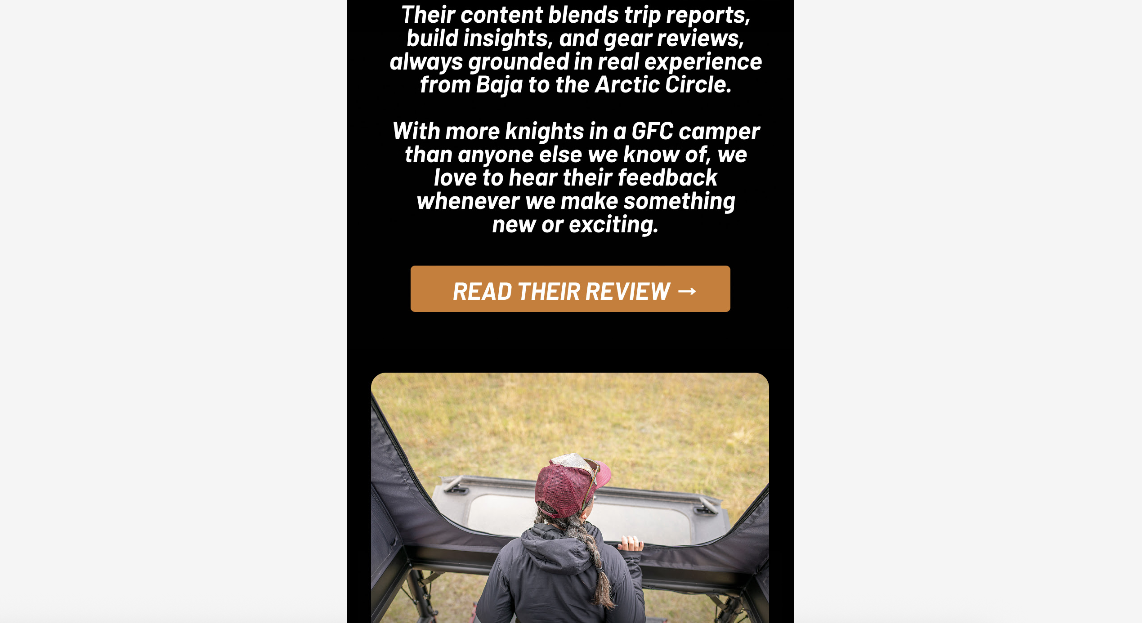 Go Fast Campers featured us on their blog and in their email newsletter this week after we shared our thoughts on the new V2 MAX camper. We are flattered with the kind words they shared about us and really appreciate the opportunity to test out their newest product!