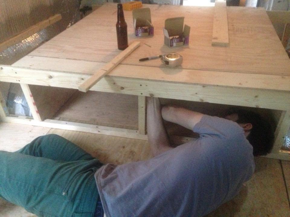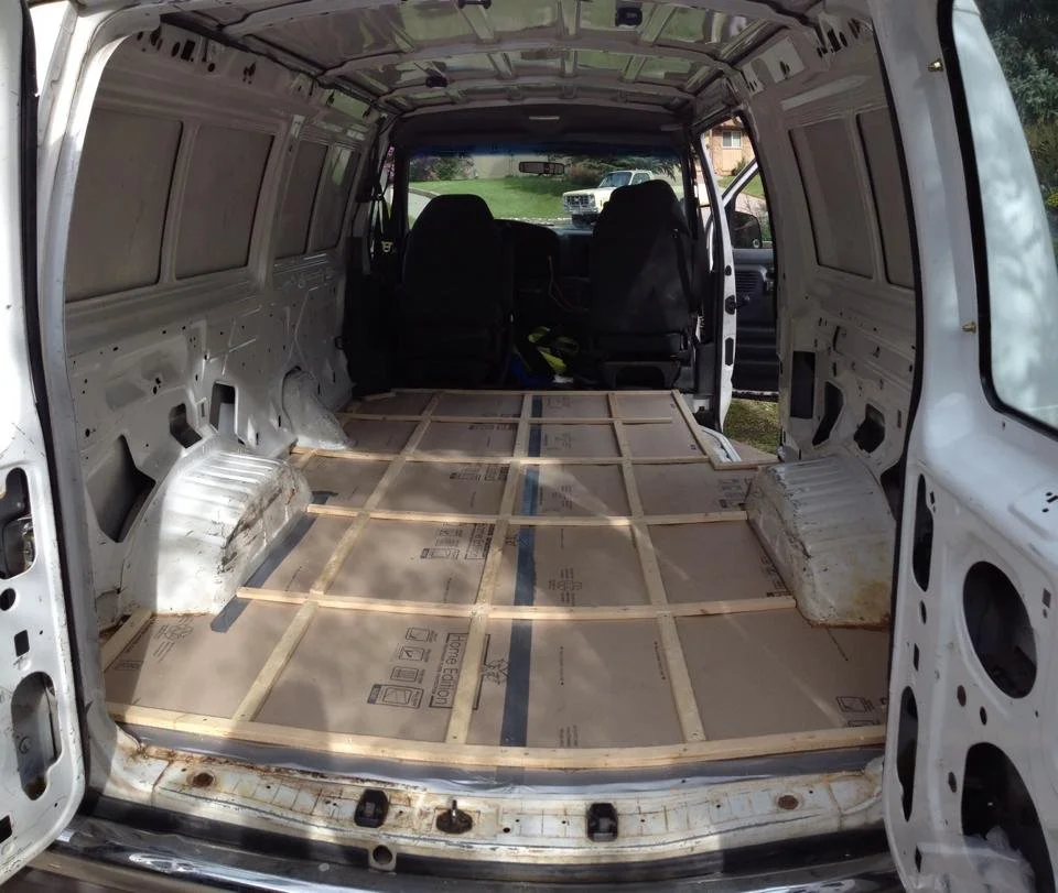 With the floor in and the wheel wells wrapped, we were ready to begin building our bed.