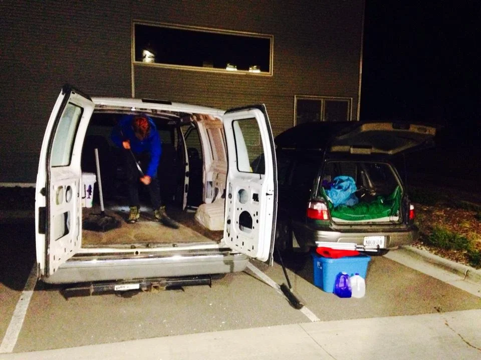 There was a lot of cleaning and scrubbing the van to get to a point where we could begin the build out.