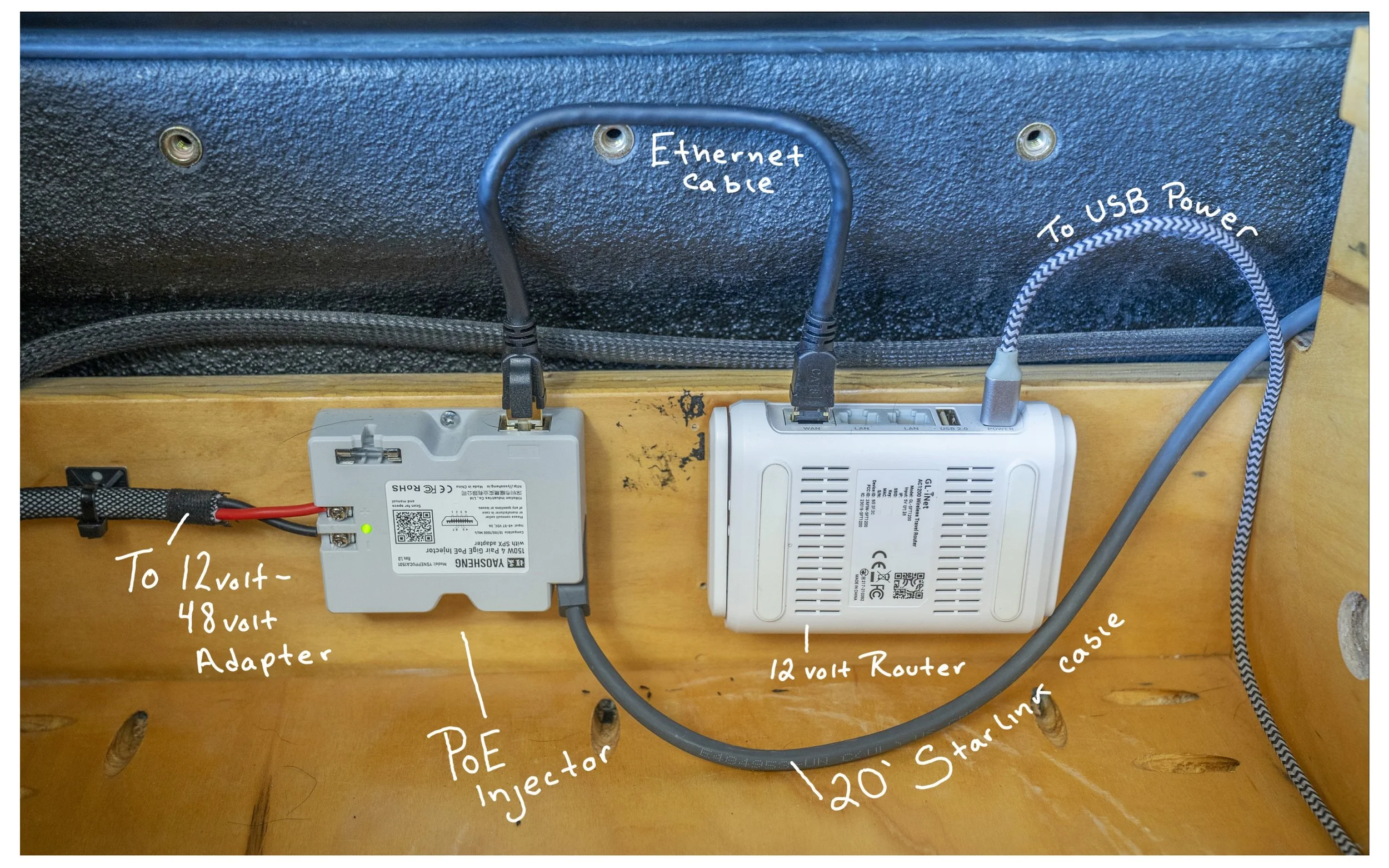 In an attempt to reduce our electrical consumption, we converted our Starlink power source from its original 120-volt source to a 12-volt source. We have more in-depth information on how we did it here.